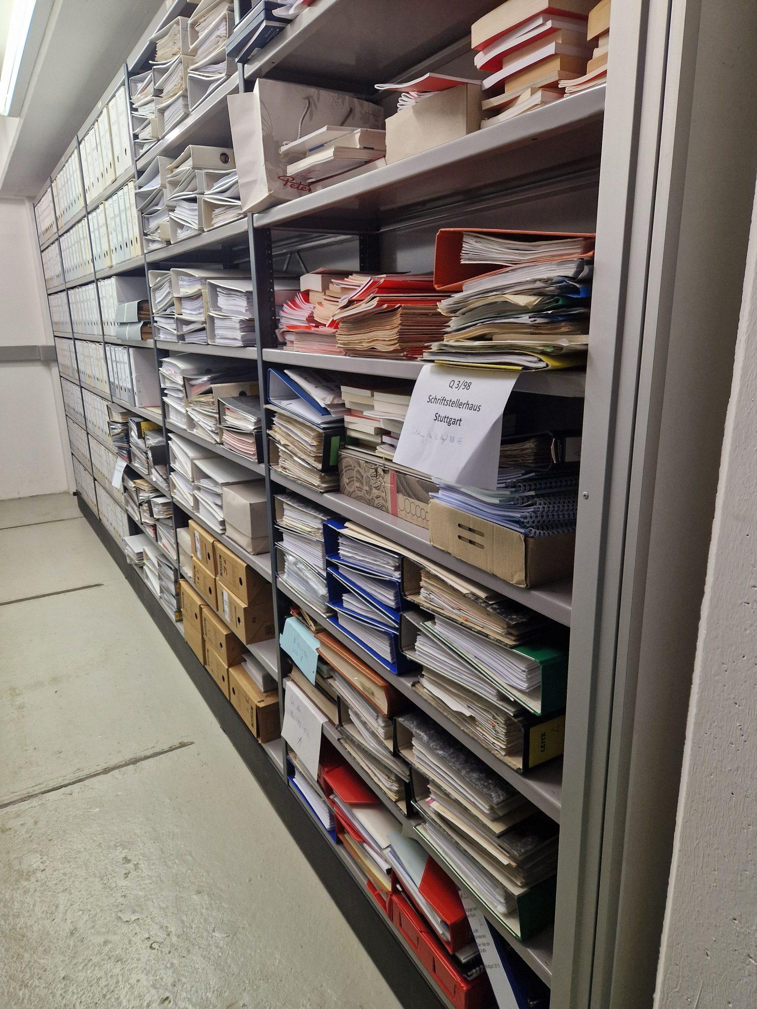 Wer schon einmal das Büro des Schriftstellerhauses besucht hat, kennt die Fülle an Büchern und Ordnern, die unsere Regale füllen. Im Rahmen des Prozesses zur Neustrukturierung unseres Hauses, unter dem Motto „Von innen nach außen“, haben wir begonnen, die Büroräume übersichtlicher zu gestalten. Dabei war es uns wichtig, die Geschichte des Vereins und unseres Hauses gut zu archivieren. So lag es nahe, das Landesarchiv Baden-Württemberg anzufragen, ob Interesse besteht, unsere Unterlagen aufzunehmen.