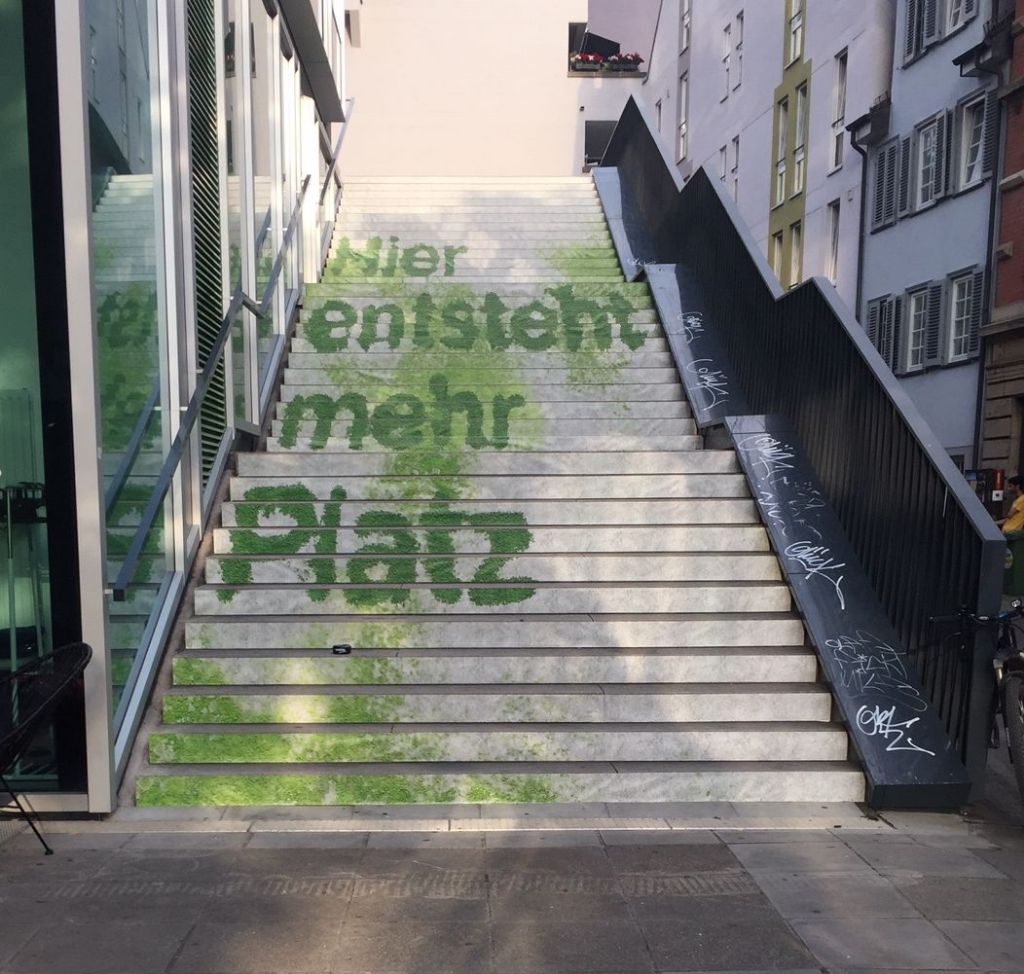 Am und vor dem Stuttgarter Schriftstellerhaus hat sich was getan: Vera Sebert und Lara Hampe haben die große, bislang ungenutzte Freitreppe gegenüber des Hauses wunderbar in Szene gesetzt, in Kooperation mit dem Café Klotz. Gleichzeitig weht die lindgrüne Fassadenfolie am Haus sachte im Wind und dieses Jahr ist die Mooswand um die Ecke tatsächlich funktionsfähig und bewässert.