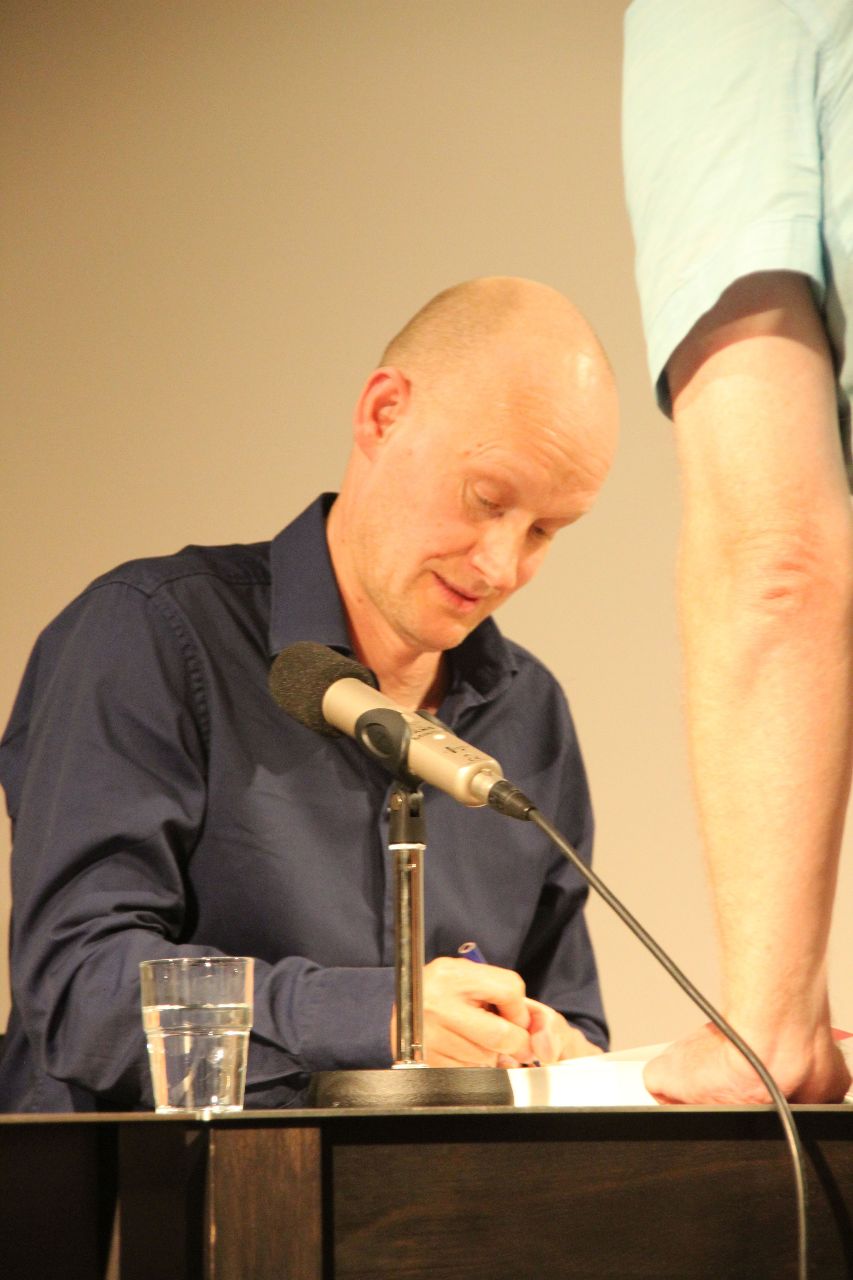 Zum Schluss wurde es dann noch persönlich: Er würde sicher niemand etwas neues erzählen, meinte Arno Geiger, wenn er feststelle, daß eine gute Beziehung tägliche Arbeit erfordere. Er sei kein romantischer Mensch, aber er führe eine glückliche Ehe und das, so Geiger „ist meine eigentliche Lebensleistung.“