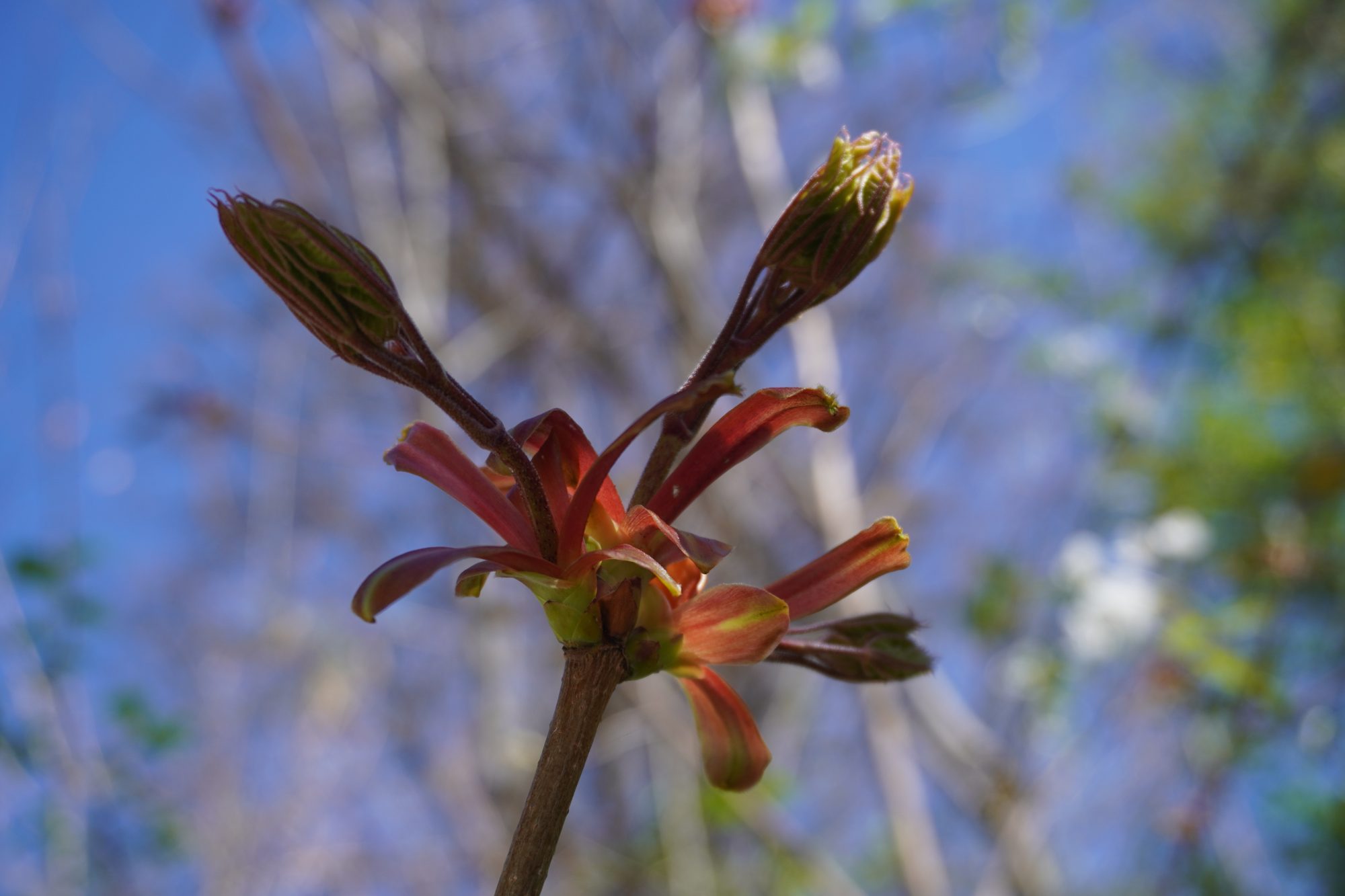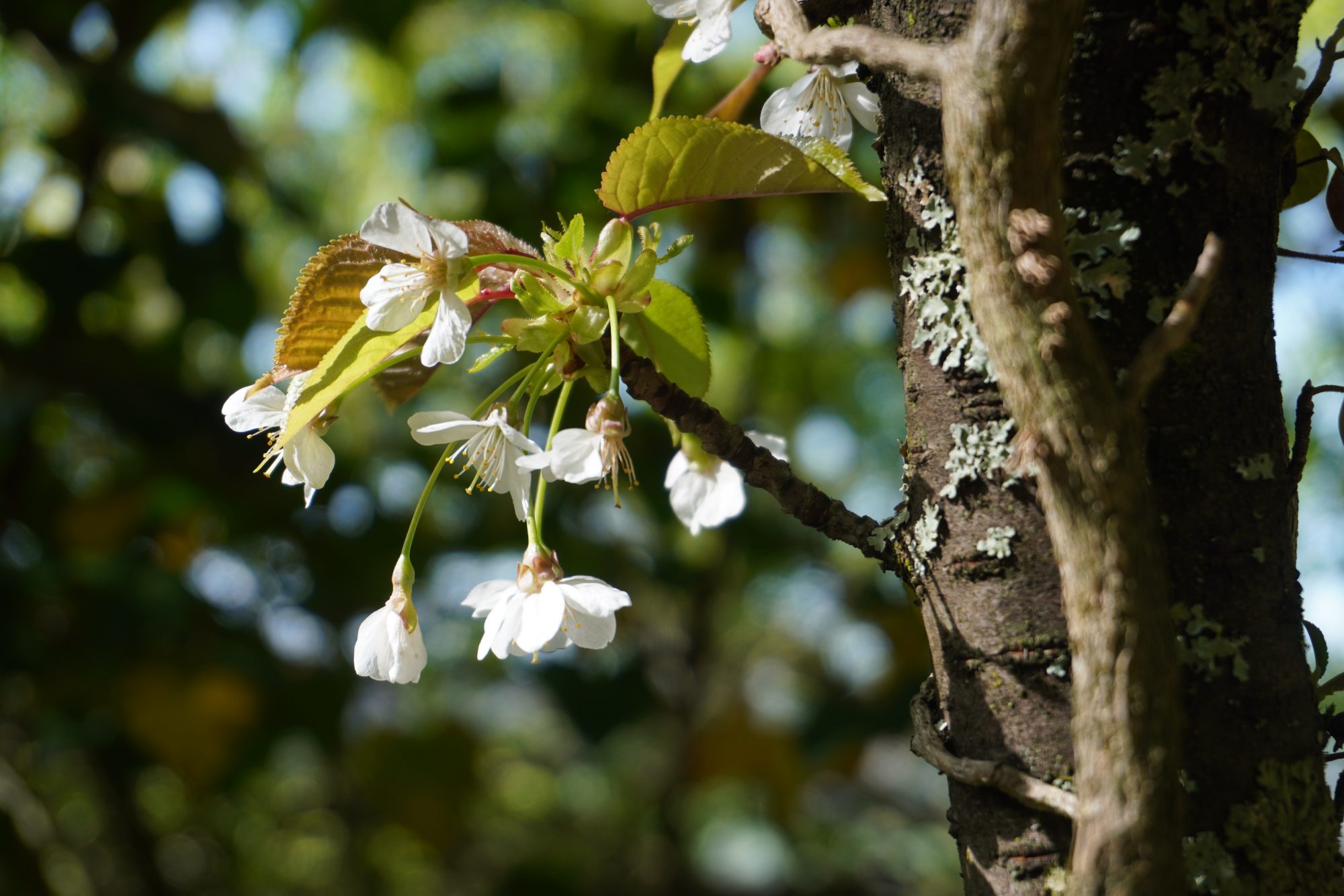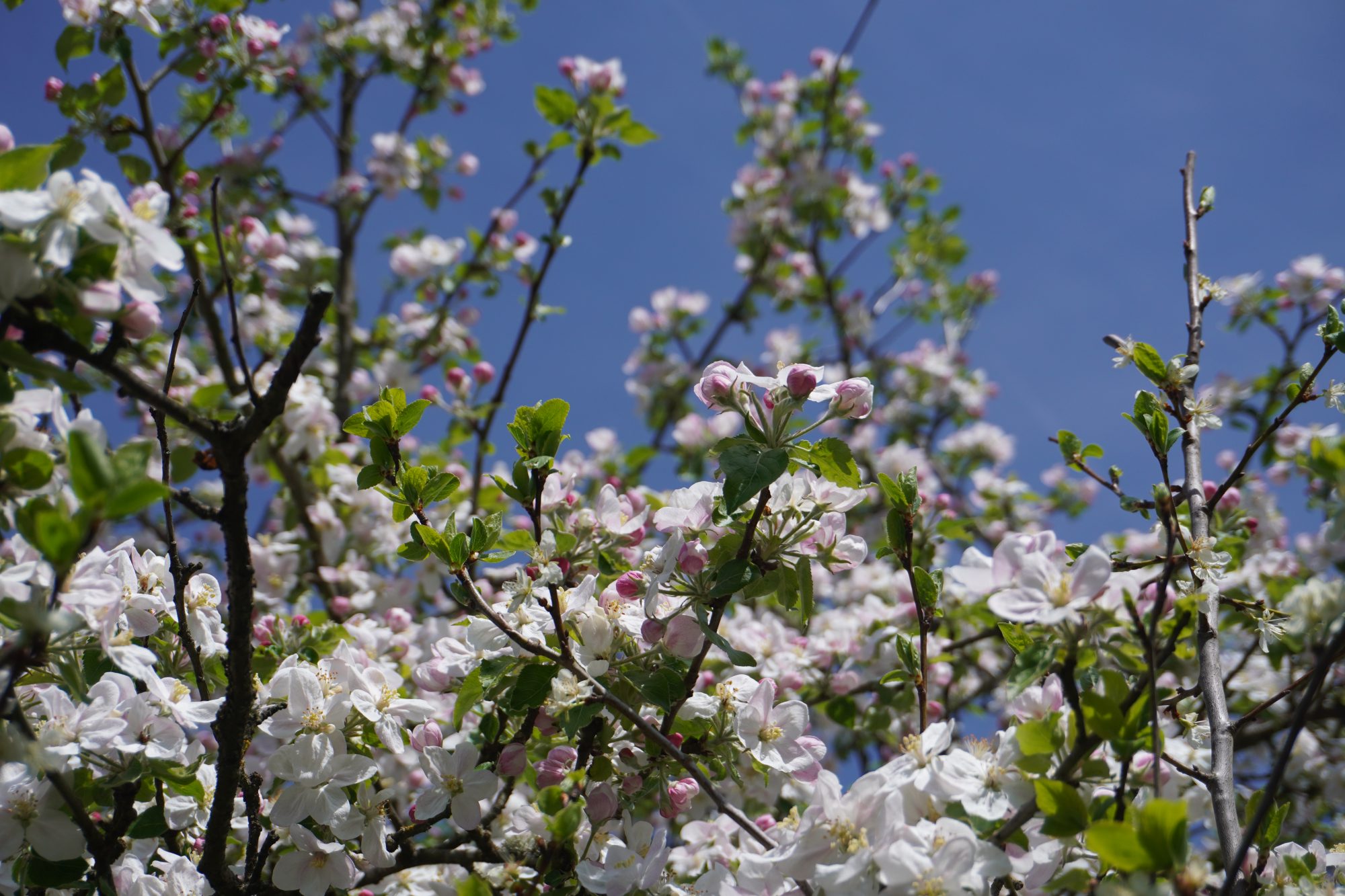 Anfang April blühen die Obstbäume. Ich laufe durch weiße Wolken. Nach und nach sprießen kleine grüne Knospen. Blätter entfalten sich. Ich halte meine Finger hinter Buchenblätter, die noch so jung sind, dass sie halbdurchsichtig sind. Meine Finger sind mehr als ein Schatten hinter ihnen. Sie sind Fleisch hinter einem grünen Vorhang.